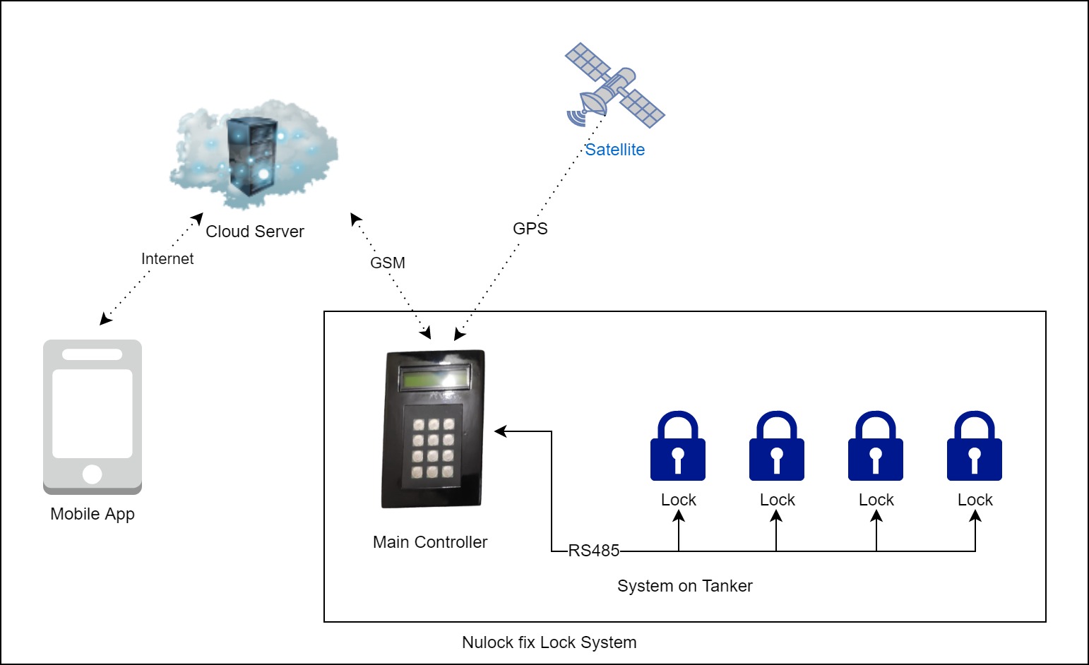 The controlling device has a keypad and display which used to enter the OTP and check the current status of the process. One controller can be connected to the multiple locks using a RS485 protocol. The locks are installed on the multiple outlet valves of the tanker. The controller and lock are designed to comply the intrinsic safety guideline.