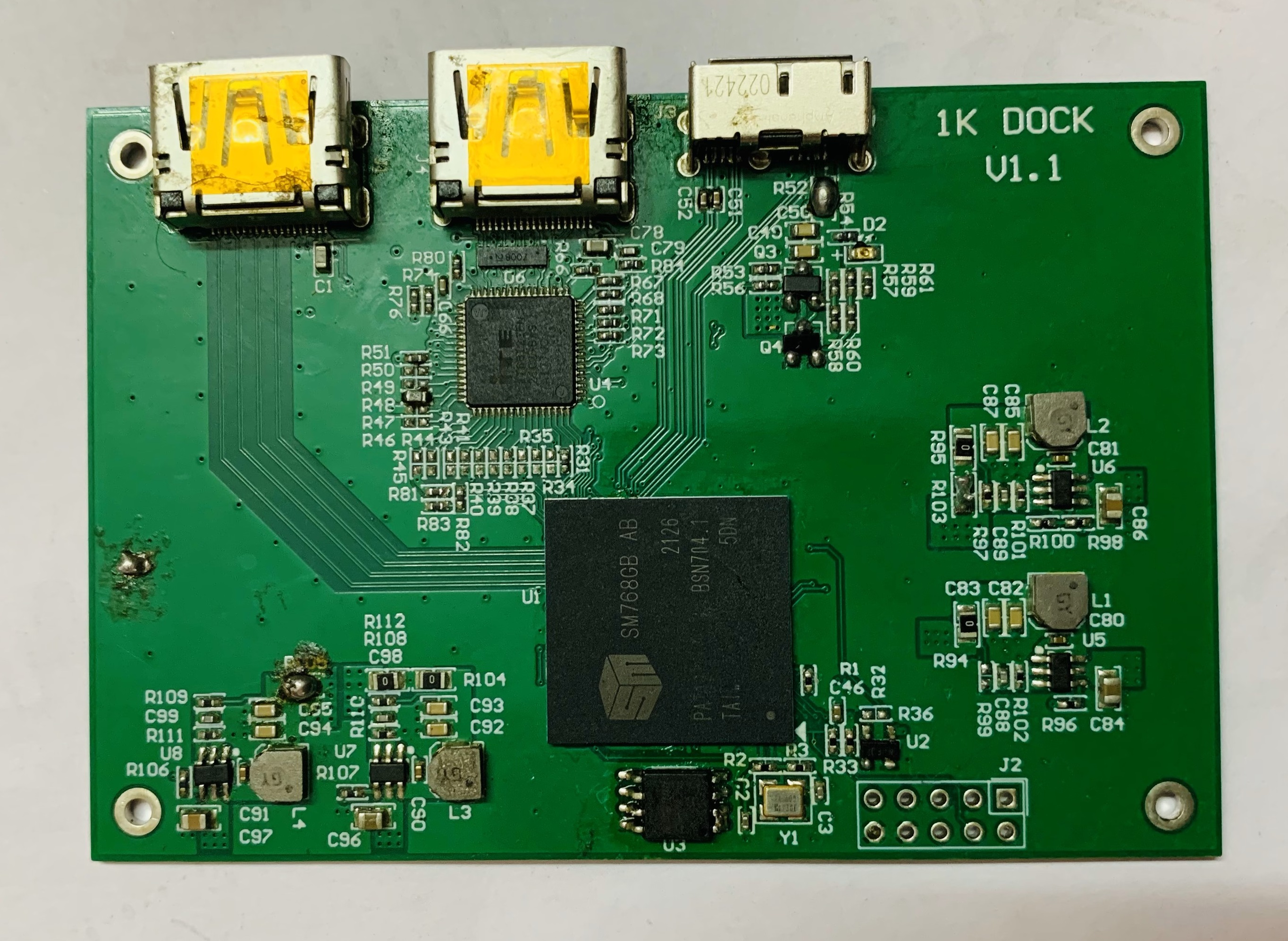 The device uses a Silicon Motion SM768 USB Display Docking Station SoC. SM768 USB display docking station graphic SoC enables multiple displays up to 4K ultra high definition through USB interface. Device can instantly mirror their computer screen to any external displays without the need to install a display driver. SM768 combine high graphics performance with low CPU loading and low power consumption. The CAT compression technology offers a high compression ratio while maintaining great image/video quality.