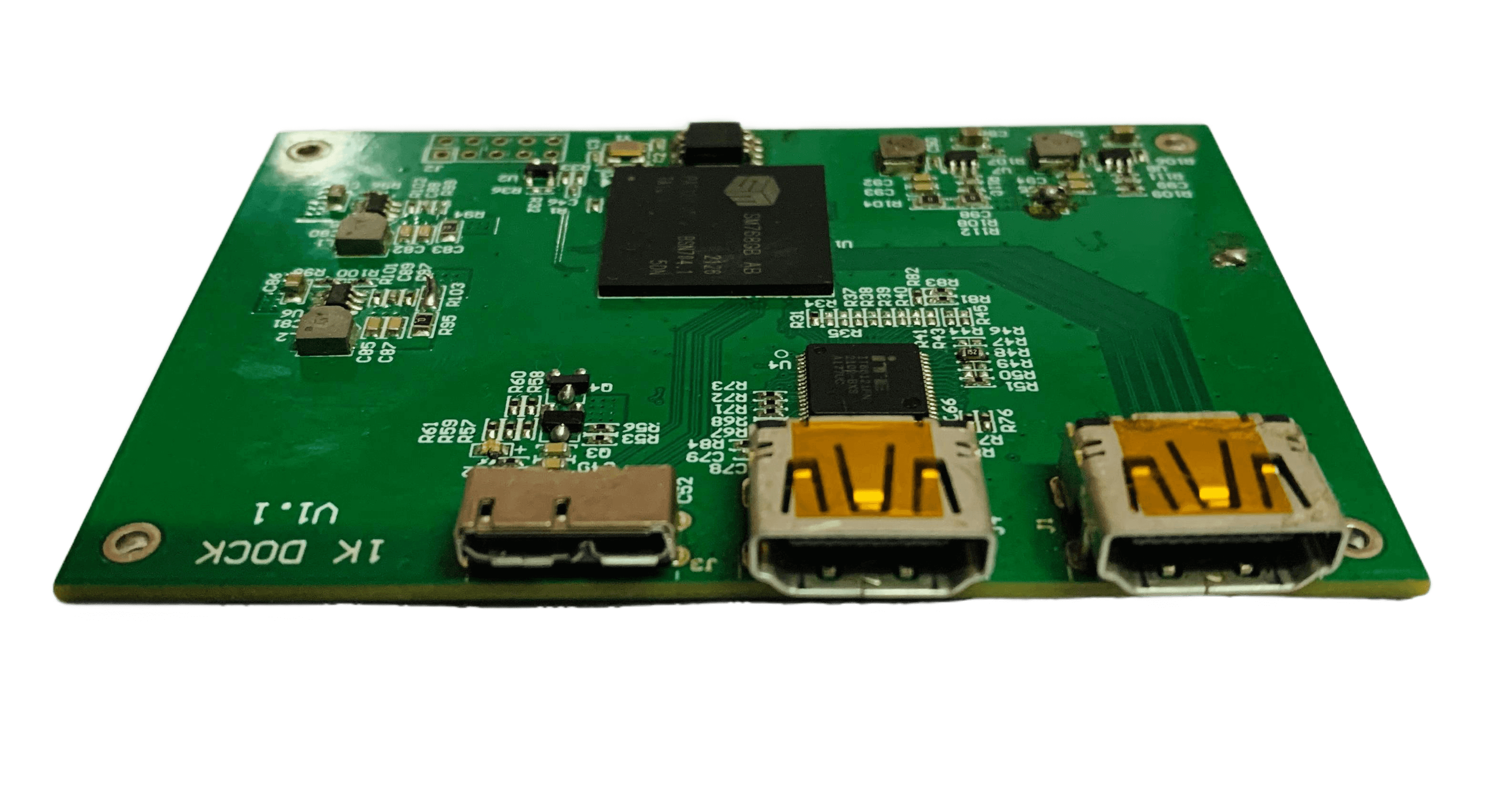 SM768 has a one direct HDMI Output Port. For the another HDMI port output, SM768 is interfaced with a HDMI transmitter IC (ITI66121FN). The transmitter IC converts the SM768 TTL data into HDMI data. A Nand Flash memory is used to store the SM768 firmware.